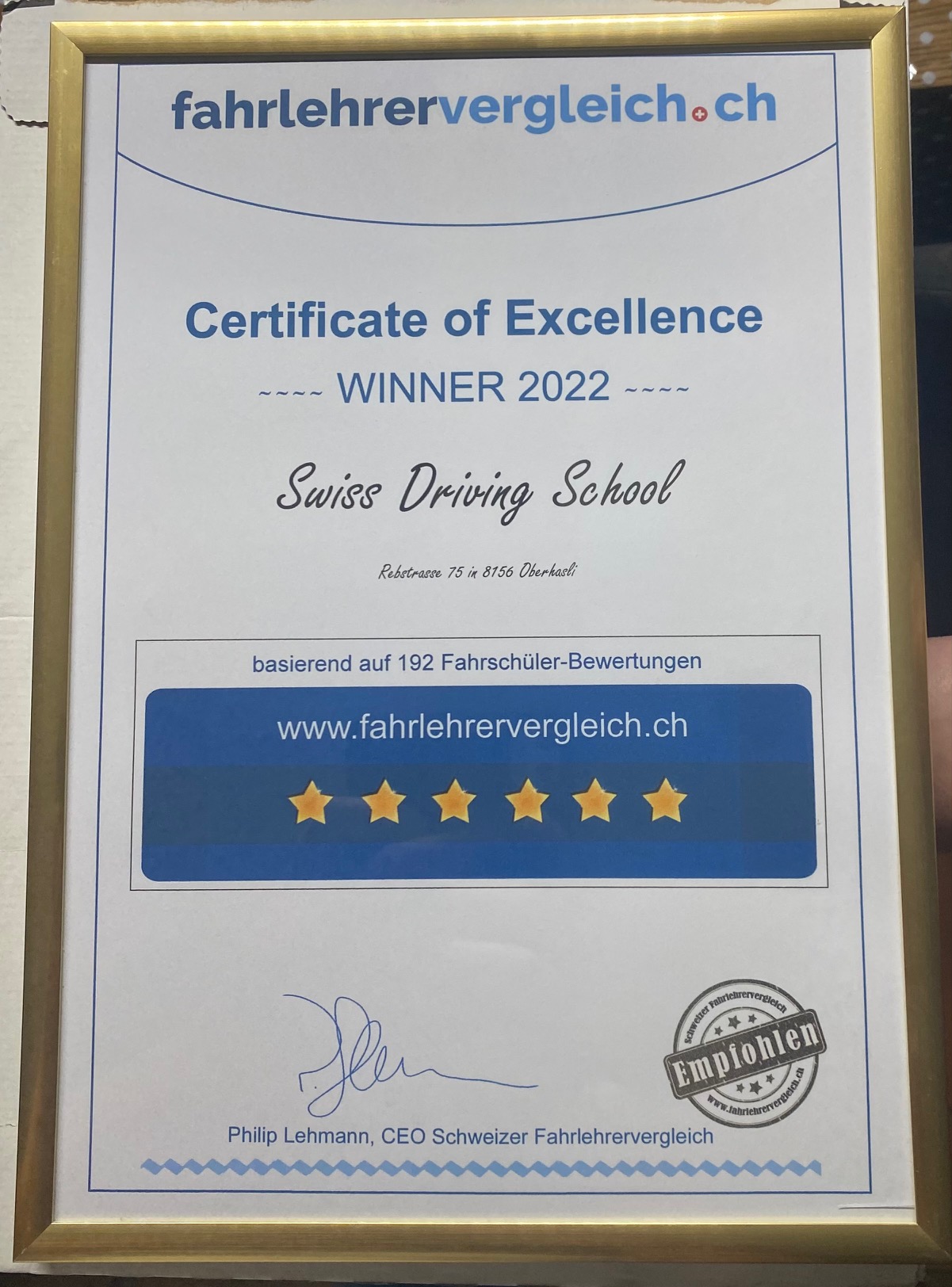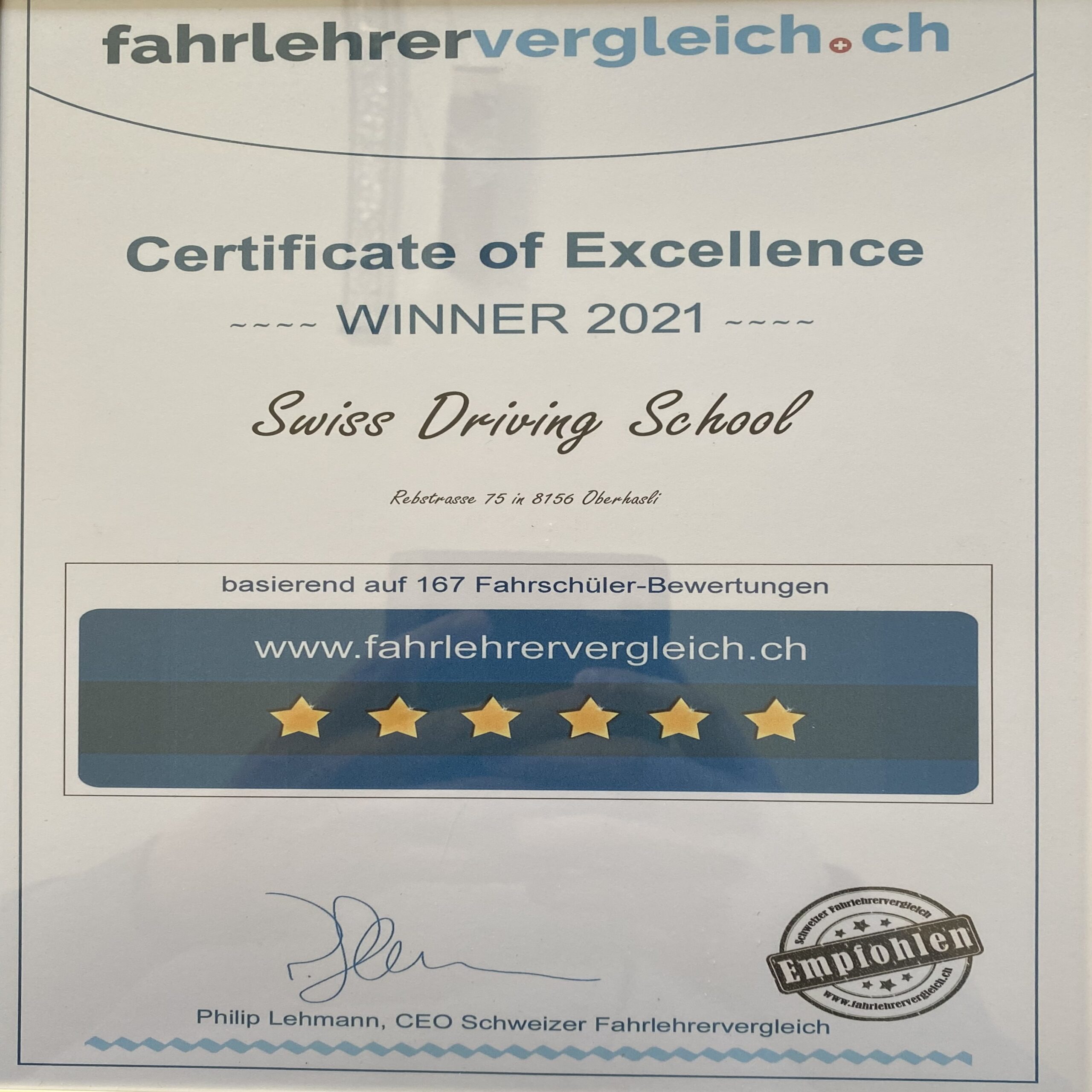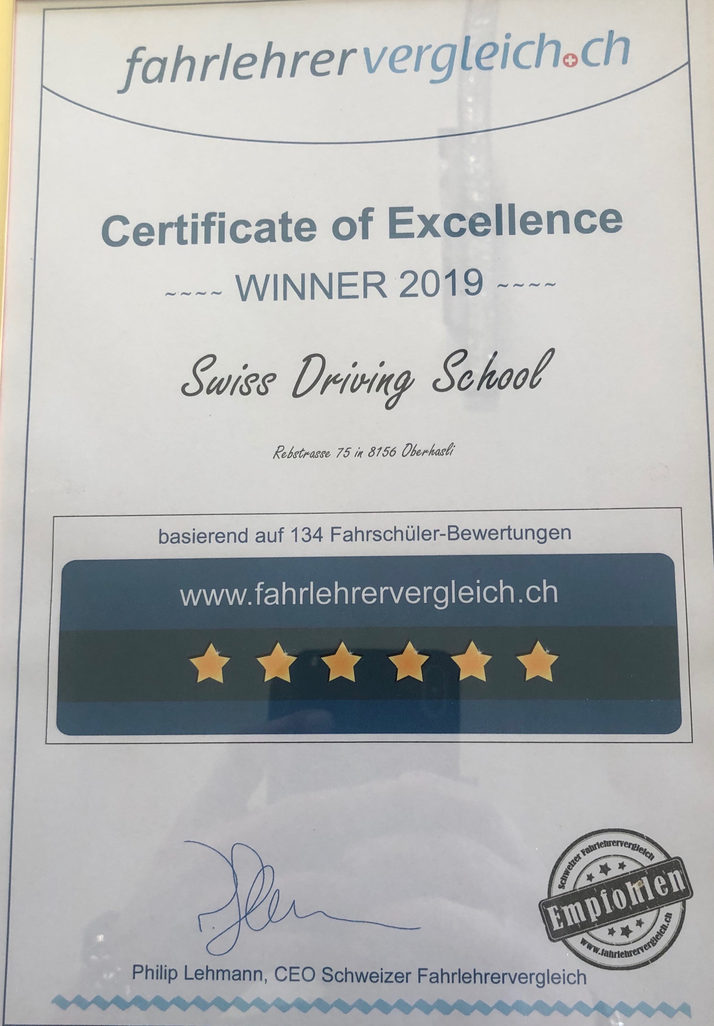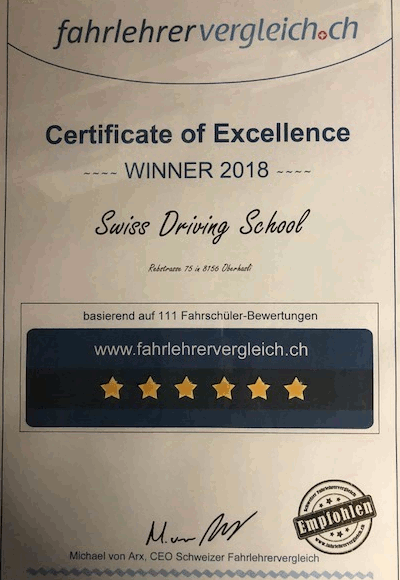 2013 bestand ich erfolgreich die Fahrlehrerprüfung und erhielt den eidgenössischen Fachausweis.